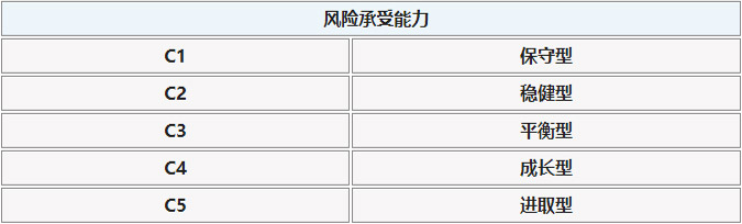 1. Assessment of investor risk tolerance & nbsp; The level of ability is divided into at least five types from low to high: C1, C2, C3, C4, and C5.